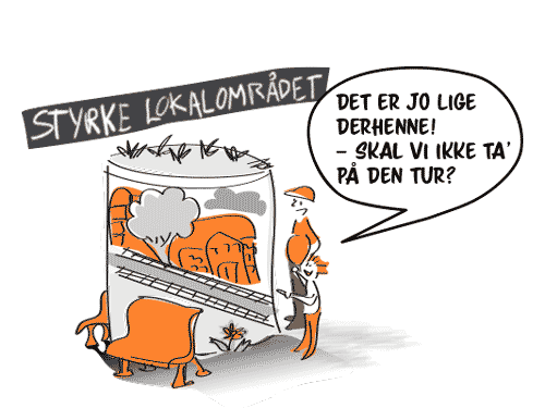 - Lokalområderne kan skabe lokal nysgerrighed, fællesskab og stolthed ved fx at lave samlingssteder, hvor du kan blive klogere på dit lokalområde, snakke om det lege med det osv.